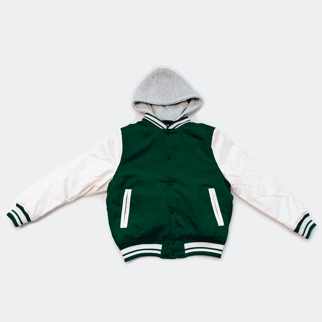 Wholesale Men’s Hooded Jackets - Green/White Colors & Assorted Sizes – Bulk Case of 12 Coats
